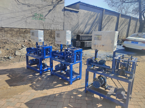上面電機(jī)與切斷行輪尖頭一致;調(diào)正,慢彎,加大中間三塊角度,出現(xiàn)豆粒彎,就縮小角度;定尺寸把滑道里面滑塊調(diào)到你所需要的尺寸,(從切斷總稱下面測量),用螺絲緊固滑塊。